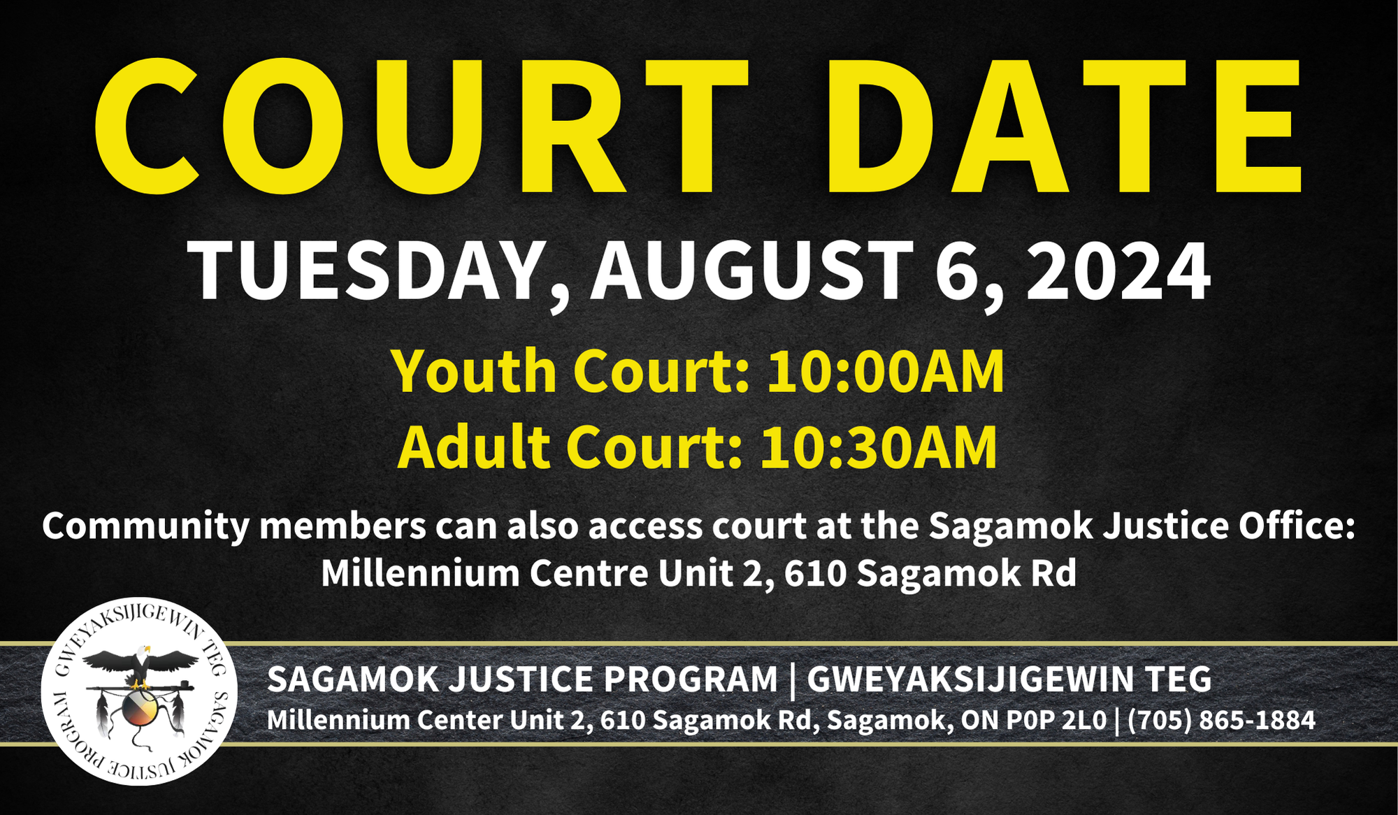 Community members can also access court at the Sagamok Justice Office: