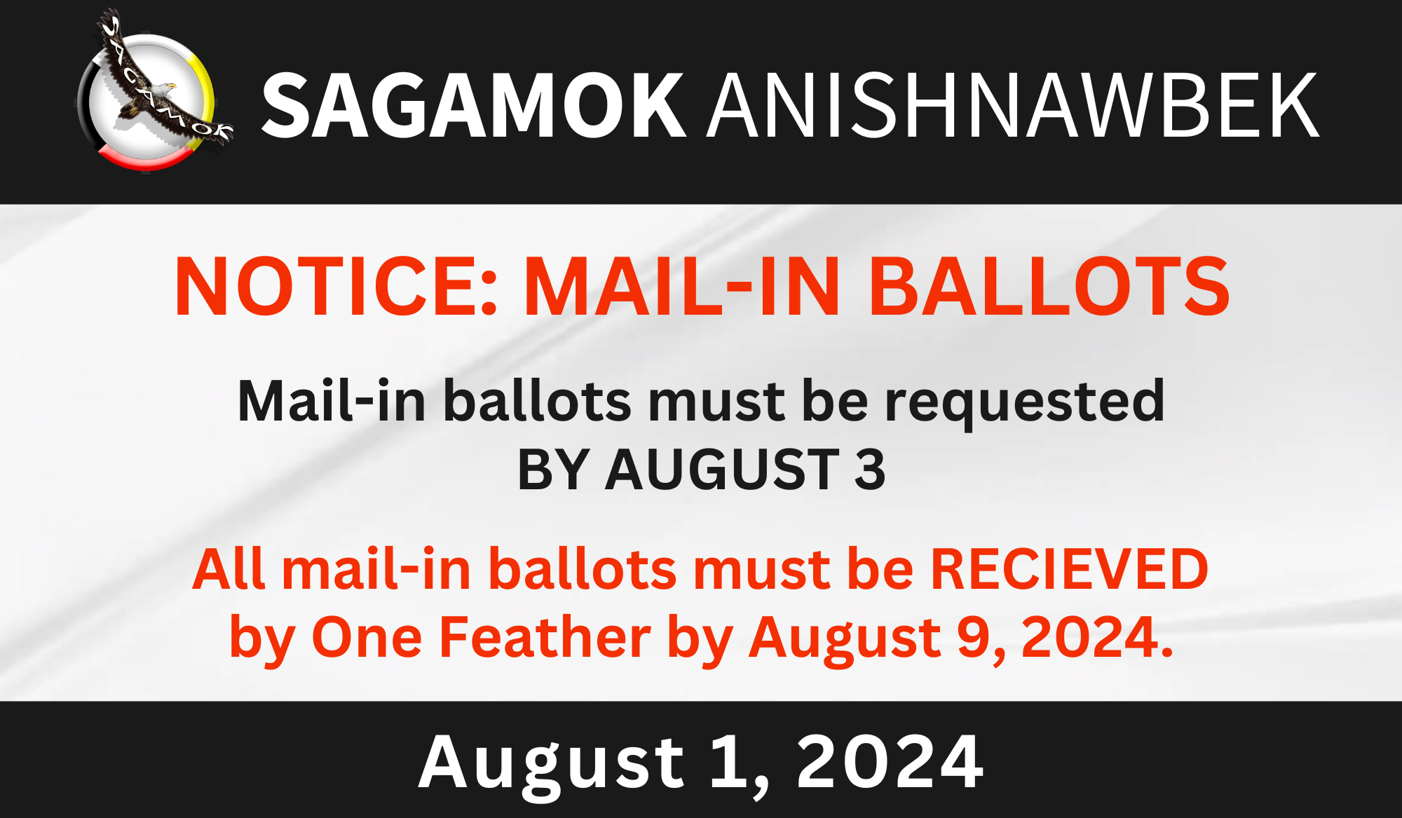 It must be received by One Feather by August 9th, so if you wait too long, you may need to send it via overnight courier.