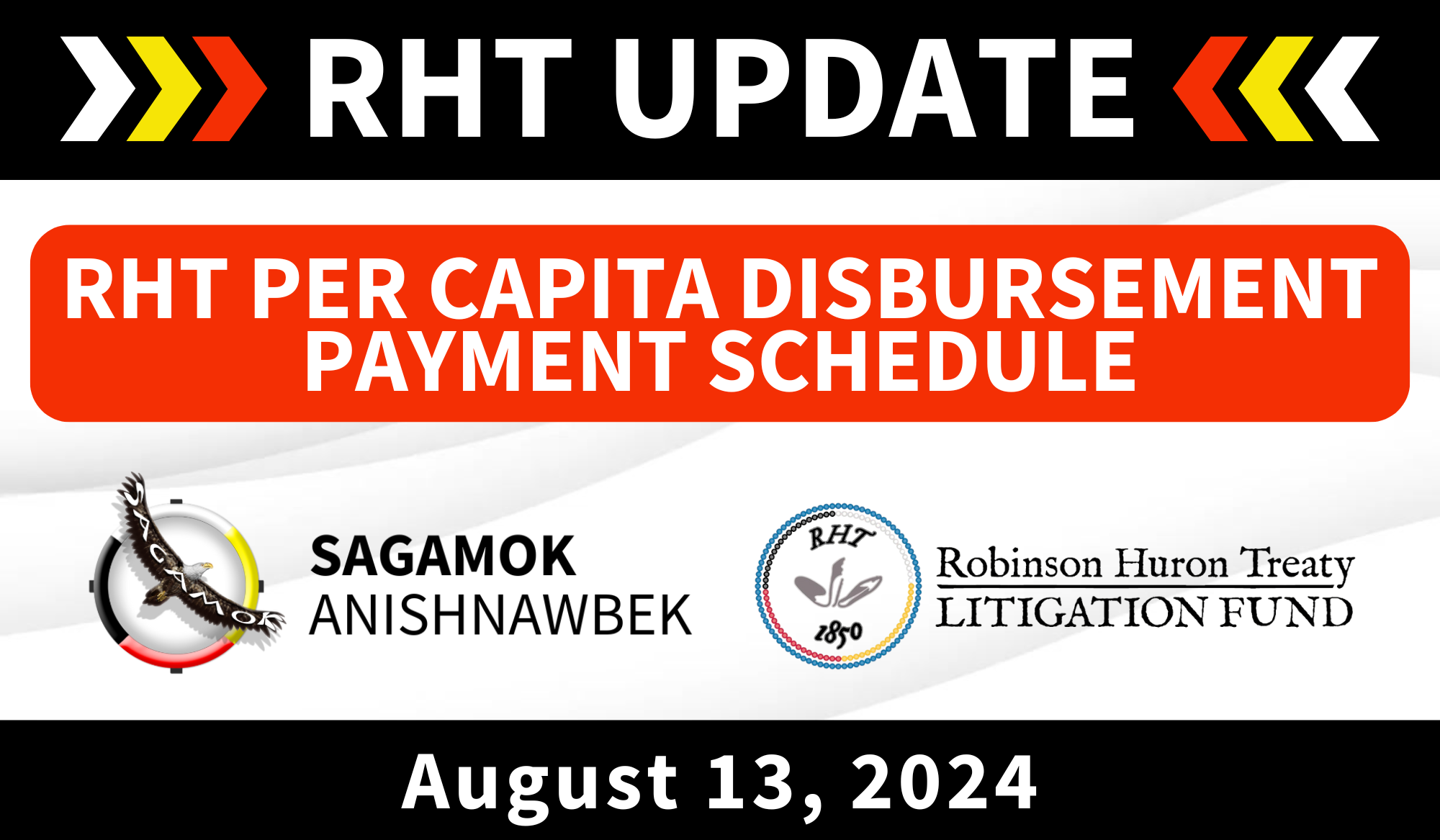 Sagamok Anishnawbek will issue RHT per capita disbursement payments WEEKLY ON FRIDAYS for any new/updated information that has been provided and confirmed by the Wednesday of that week.