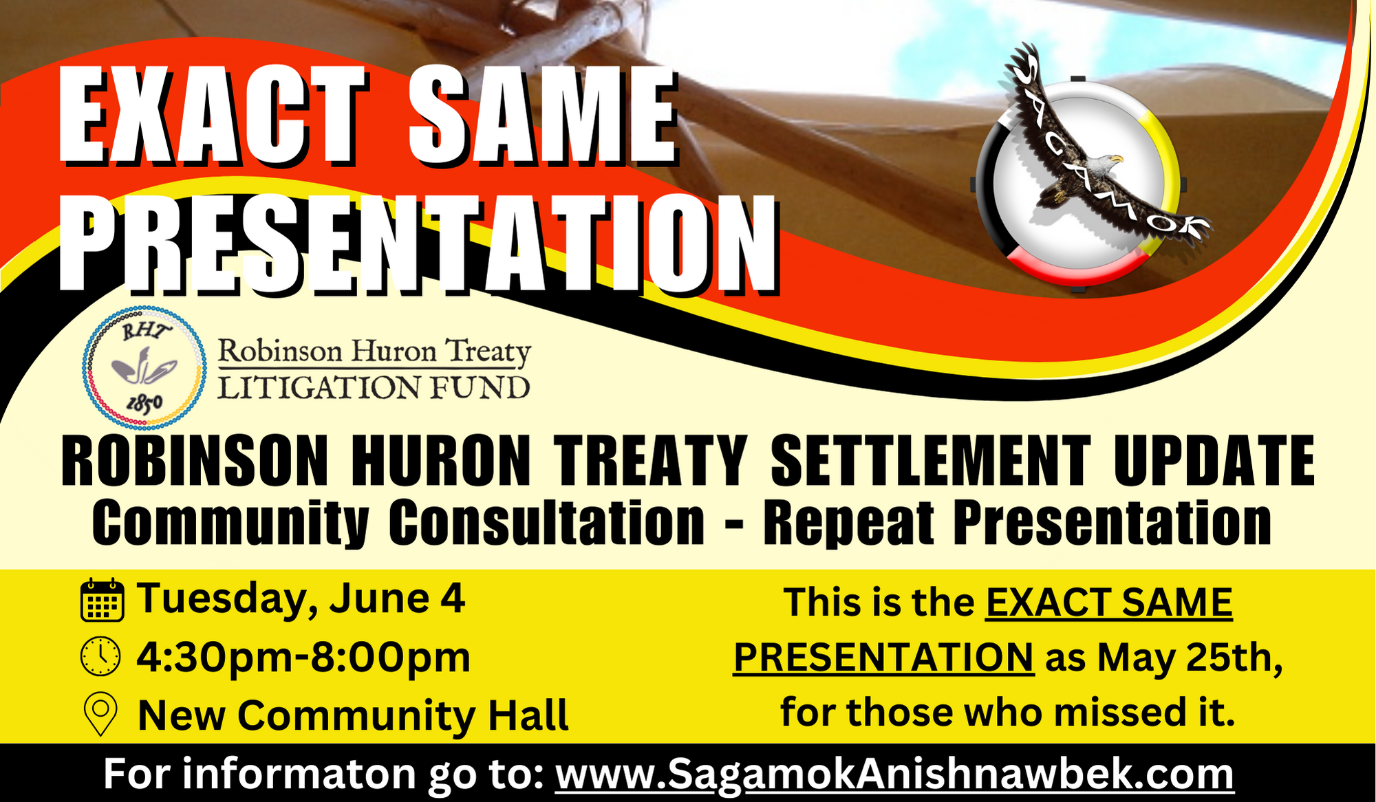 There will be a REPEAT Robinson Huron Treaty Community Consultation for those who missed it.