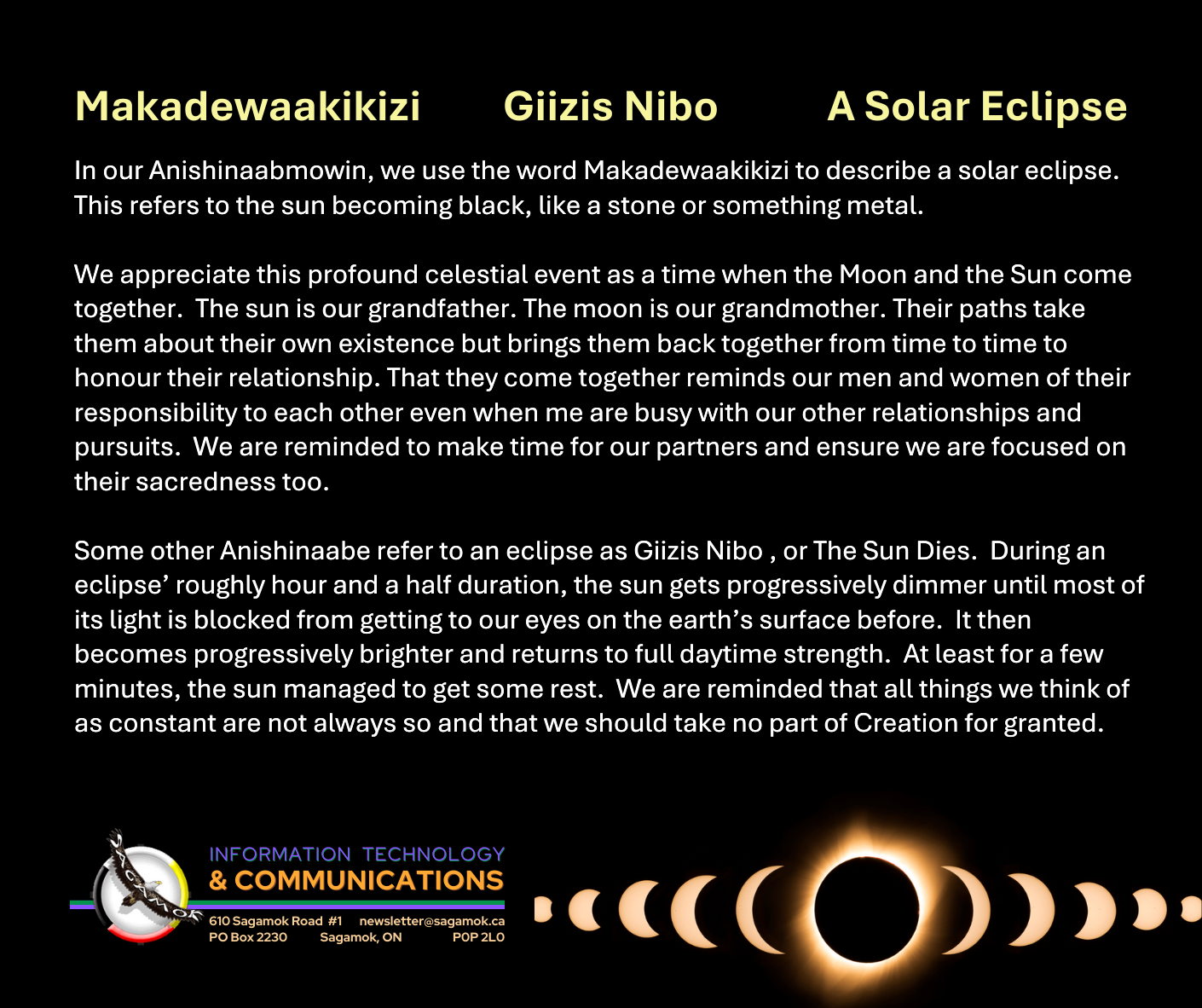 Makadewaakikizi Giizis Nibo A Solar Eclipse