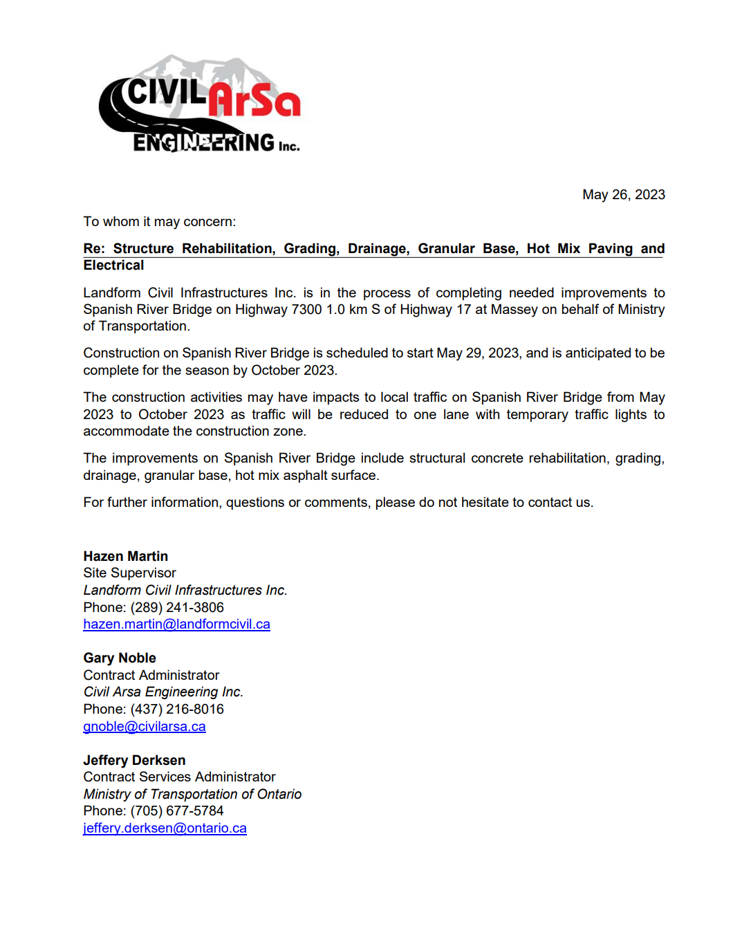 Construction on the Spanish River Bridge—Summer/Fall 2023