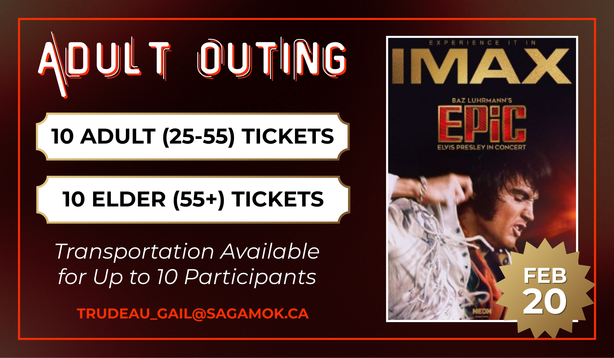 Join us for an outing to the IMAX theatre at Science North to see EPiC: Elvis Presley in Concert!