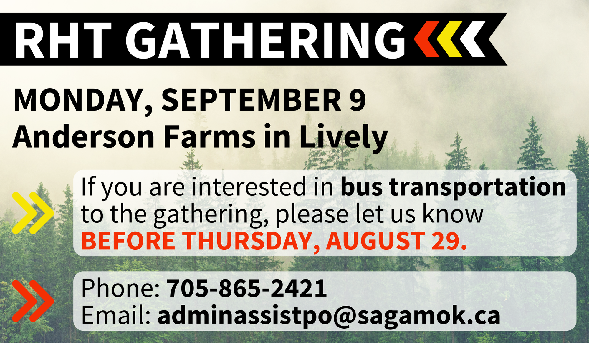 You can either call the Sagamok reception desk at 705-865-2421 or email adminassistpo@sagamok.ca.