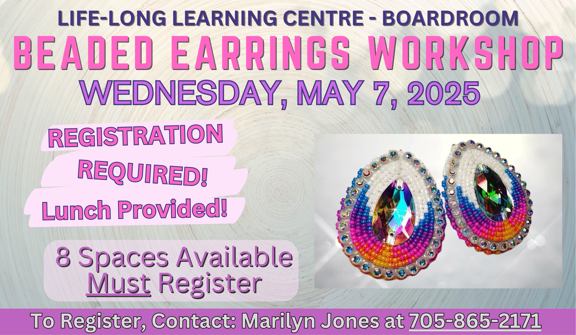 To register, please contact Marilyn Jones at 705-865-2171