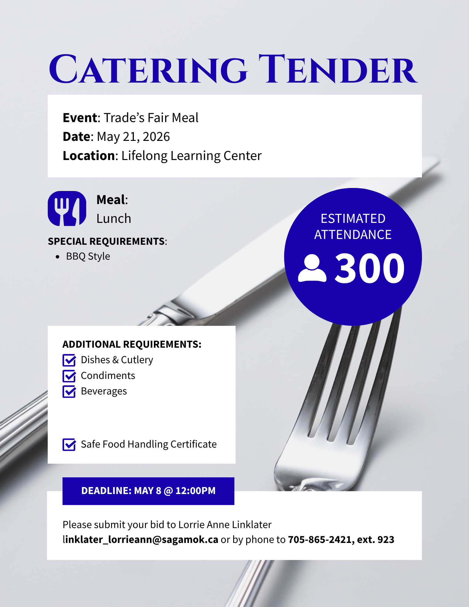 Please submit your bid in person to the Lifelong Learning Centre to Lorrie Ann Linklater , linklater_lorrieann@sagamok.ca or by phone to 705-865-2421, etc. 923Click here to view full tender.