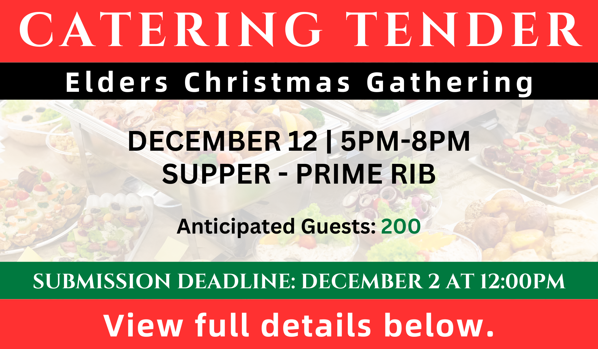 Catering and serving are required for the Elders Christmas Gathering.