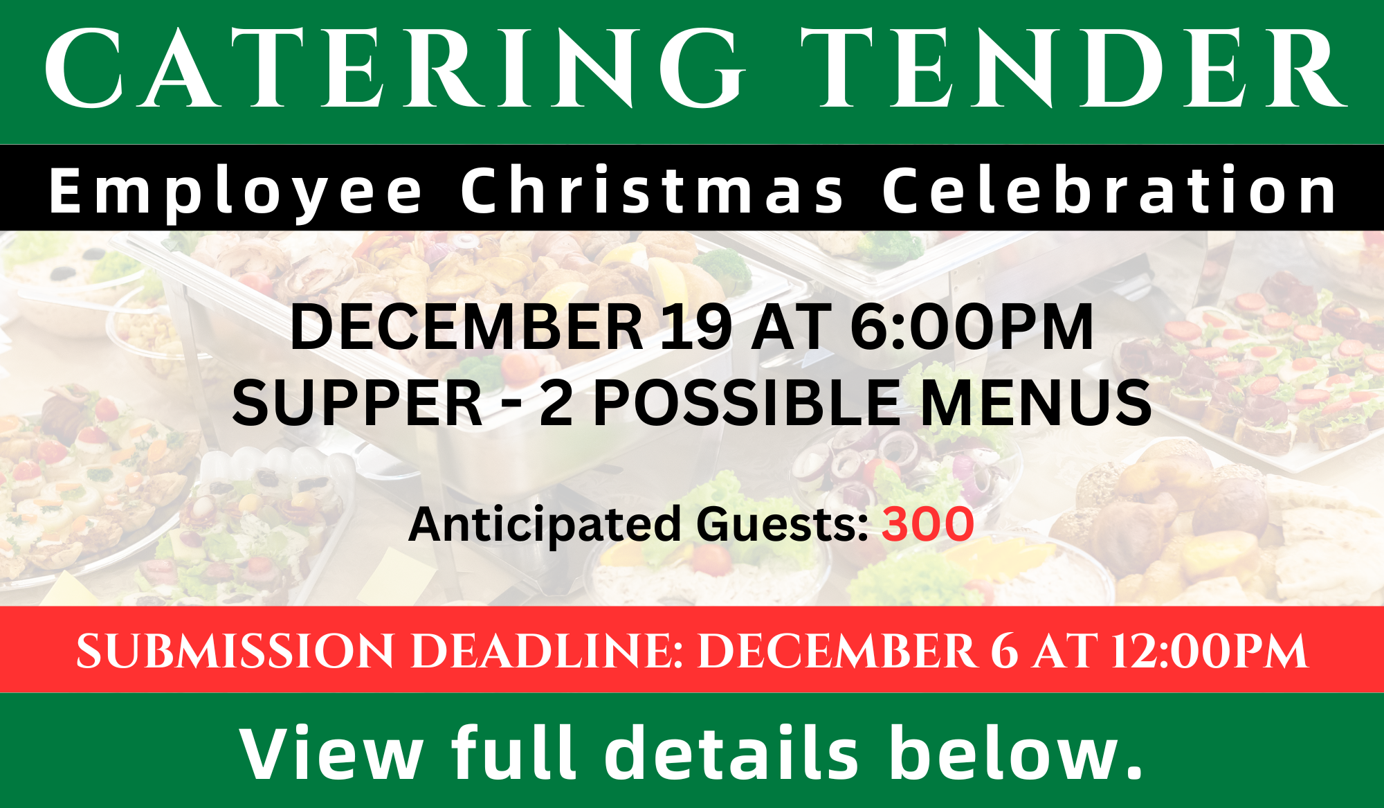Catering services are required for the Sagamok Employee Annual Christmas Celebration.