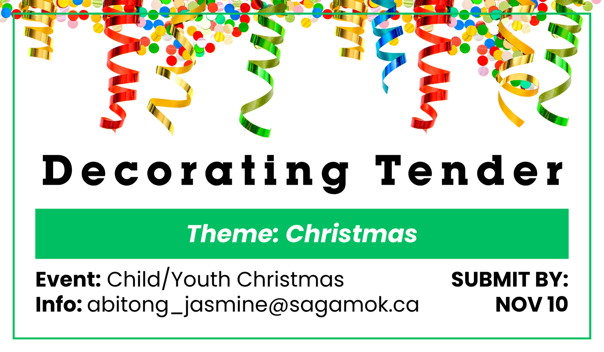 Decorating services are required for the 2nd Annual Child/Youth Christmas Celebration.
