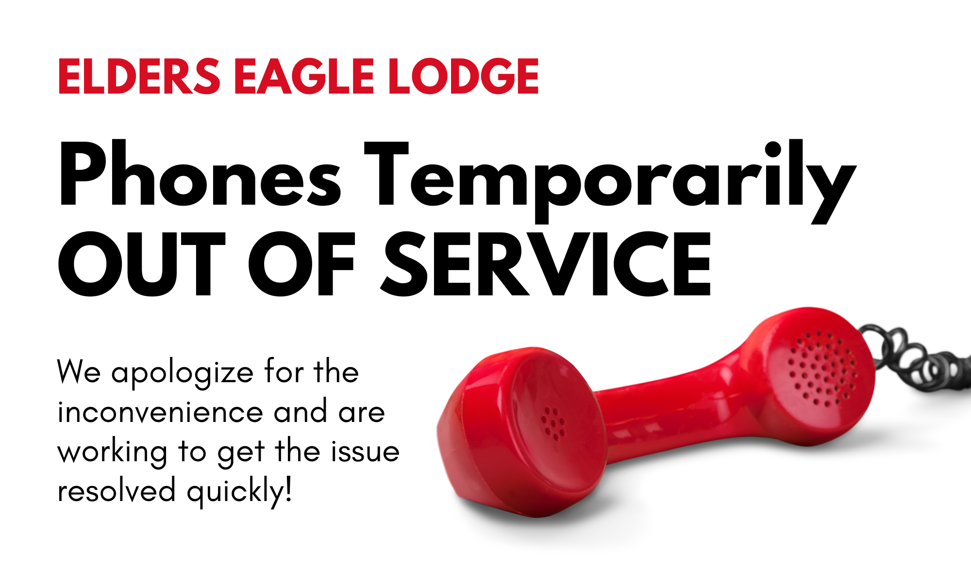 The phones at the Elders Eagle Lodge are temporarily out of service.