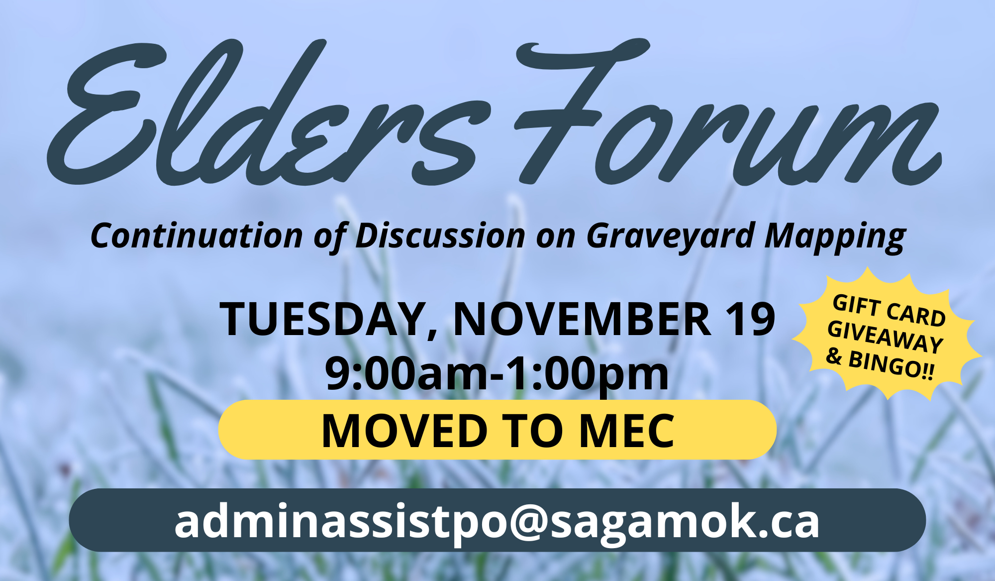For more information and to register, contact Darla Boston at 705-865-2421 or by email at adminassistpo@sagamok.ca.