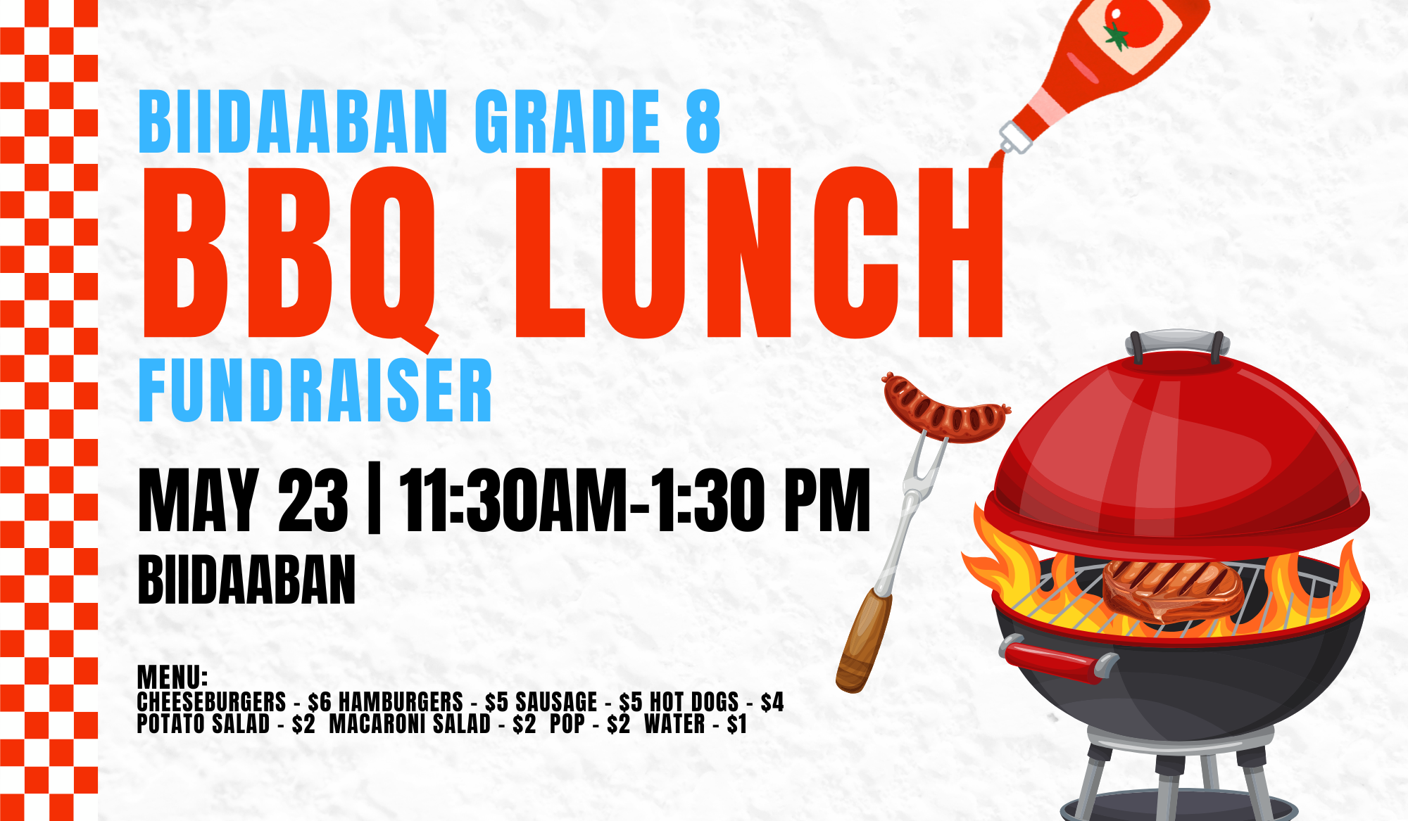 Enjoy a BBQ lunch in support of the Biidaaban Grade 8 class!