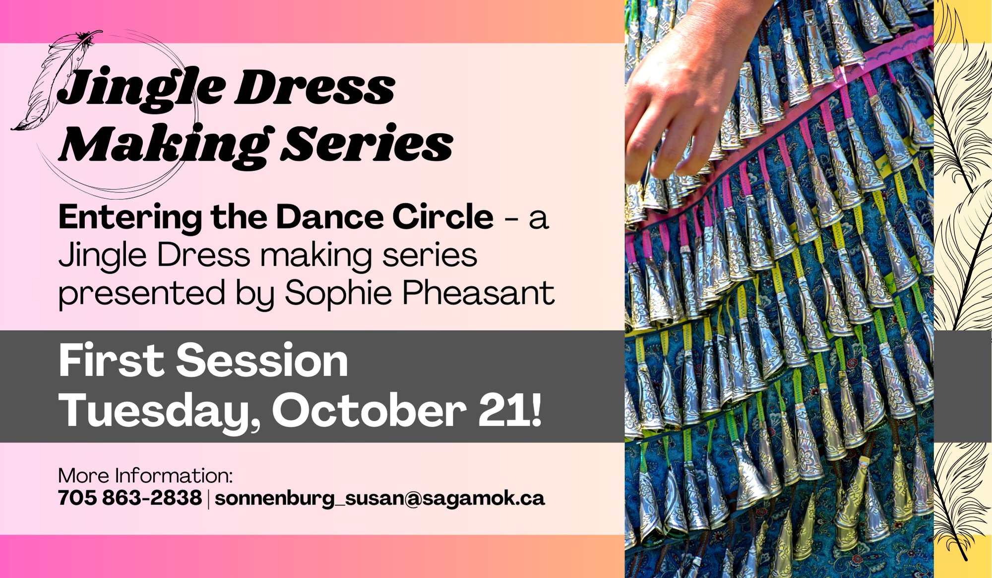 Entering the Dance Circle - a Jingle Dress making series presented by Sophie Pheasant. Sixteen sessions beginning October 21!
