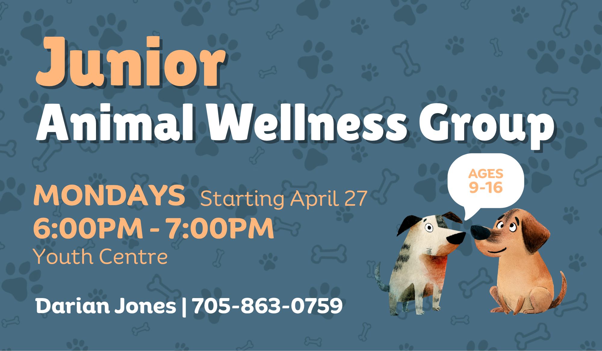 The Jr. Animal Wellness Group is a weekly program for ages 9–16 where you can learn about animal care, responsible pet ownership, and preventing neglect. Enjoy hands-on activities, making treats, and fun field trips—all while connecting with others who love animals. Snacks, refreshments, and a door prize are included each week.