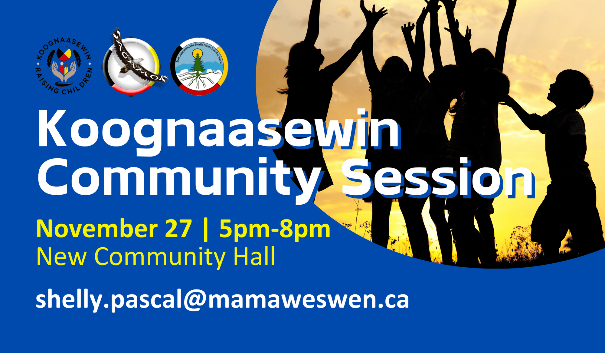 An opportunity for Sagamok Anishnawbek members to hear a presentation from Koognaasewin and to provide input on Sagamok Anishnawbek's Draft System Design model and Draft Child Wellbeing Law.