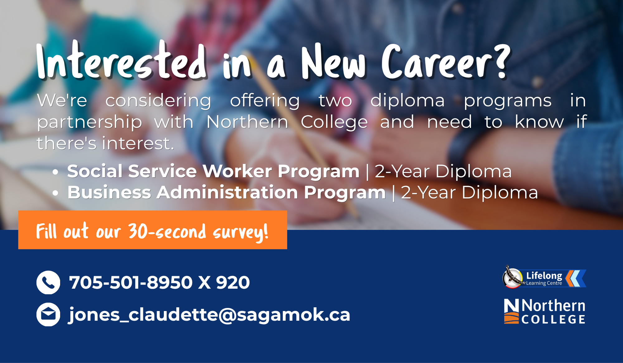 The Lifelong Learning Centre is considering offering two diploma programs in partnership with Northern College and needs to know if there is interest.