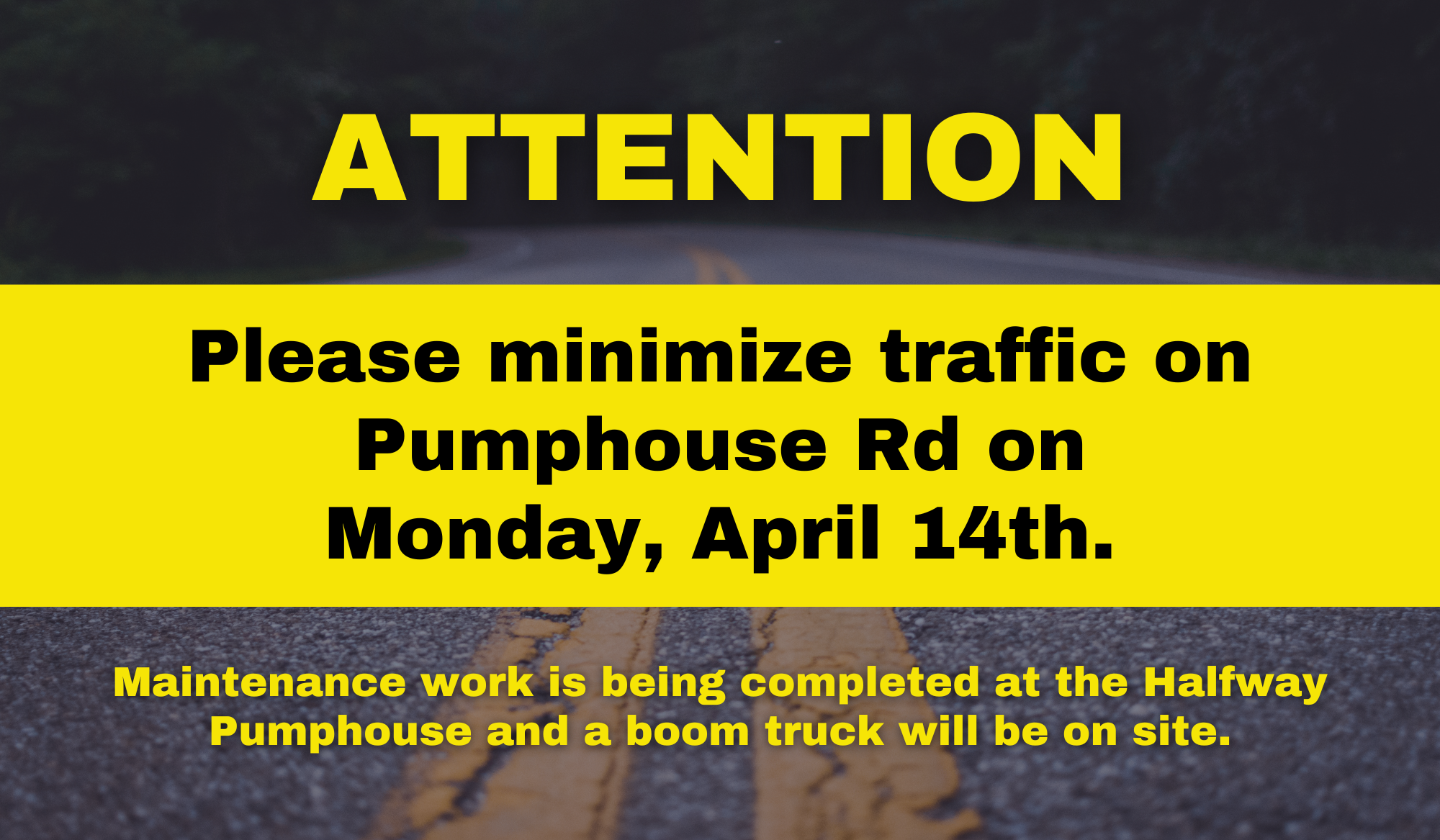Please minimize traffic on Pumphouse Rd on Monday, April 14.