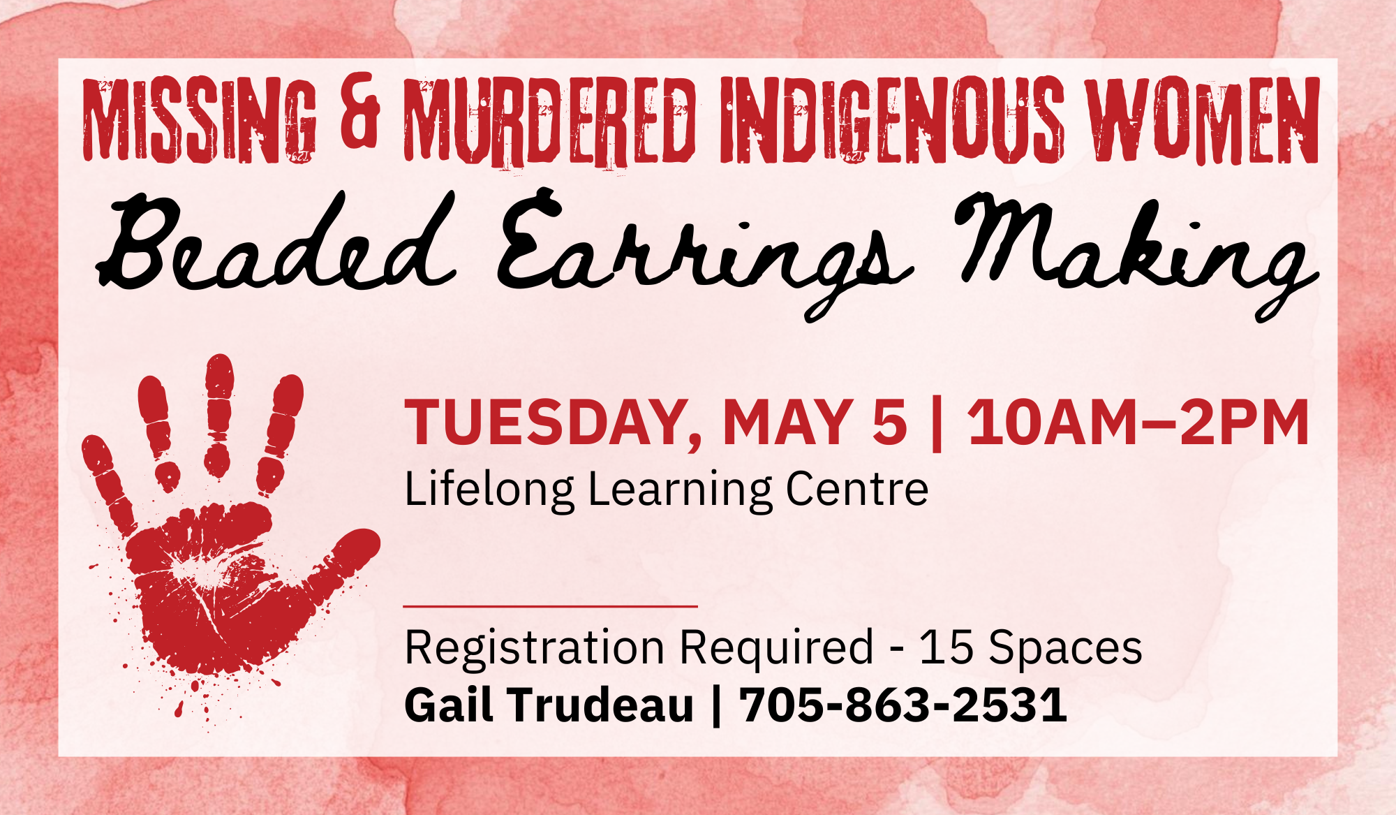 Join us in making beaded earrings in honour of Missing and Murdered Indigenous Women.