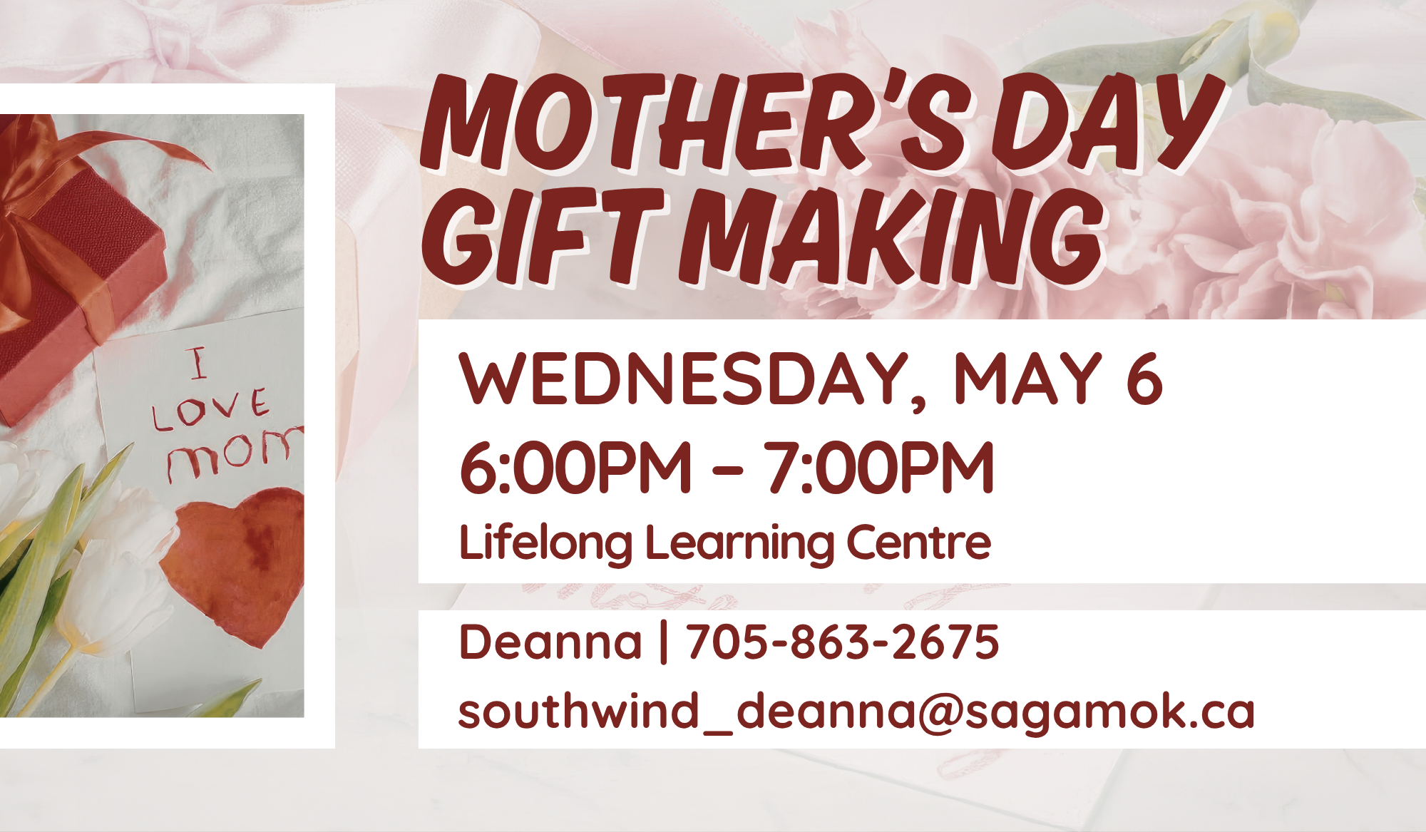 Come out and join the Children Wellness Workers in creating heartfelt gifts for Mother's Day for your loving N’ Gashi or N’ Gookmis.