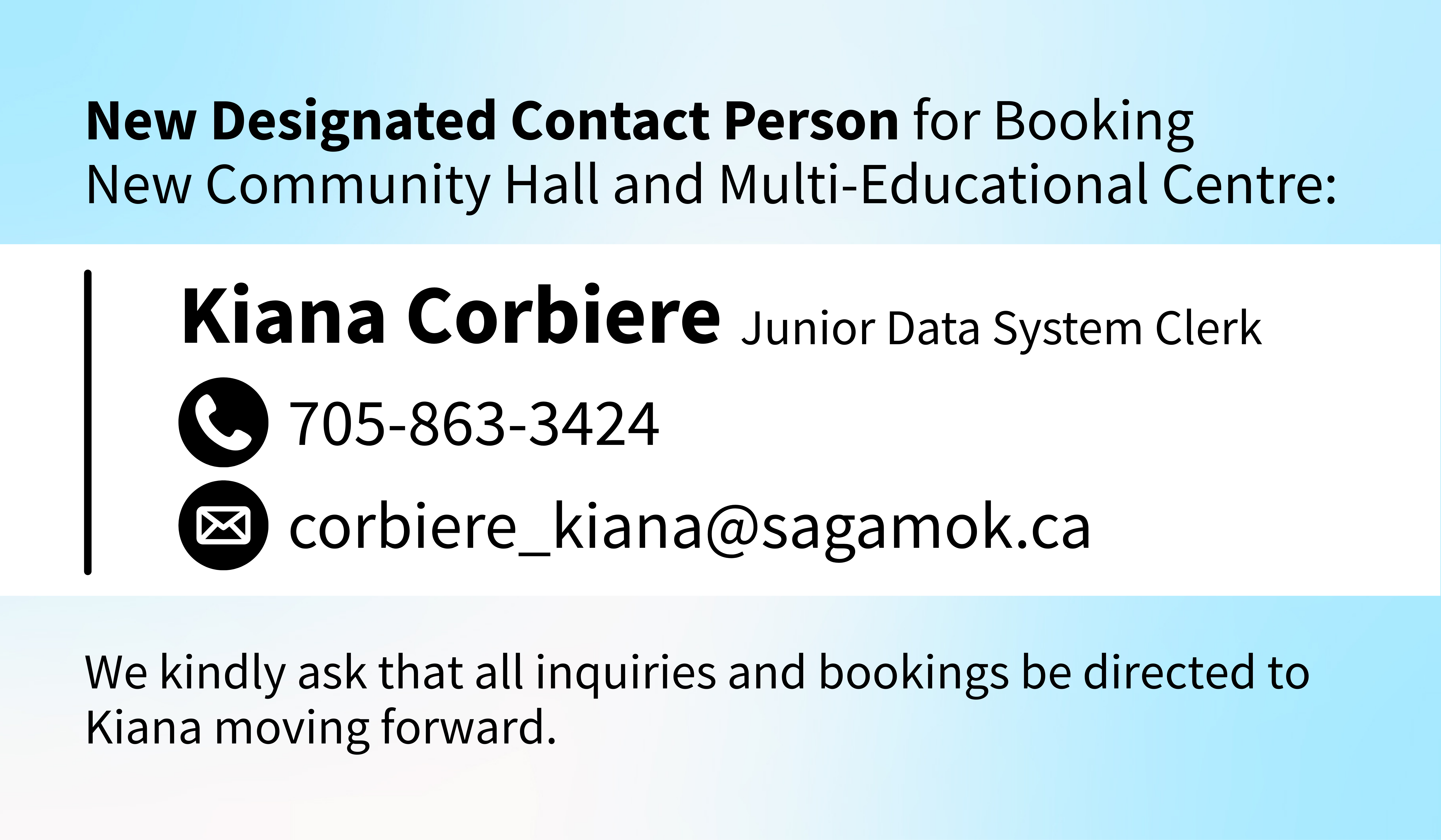 Please be advised that as of September 18, 2025, Kiana Corbiere is the designated contact person for all bookings and arrangements related to wakes and funeral services at the New Community Hall and the Multi-Educational Centre.