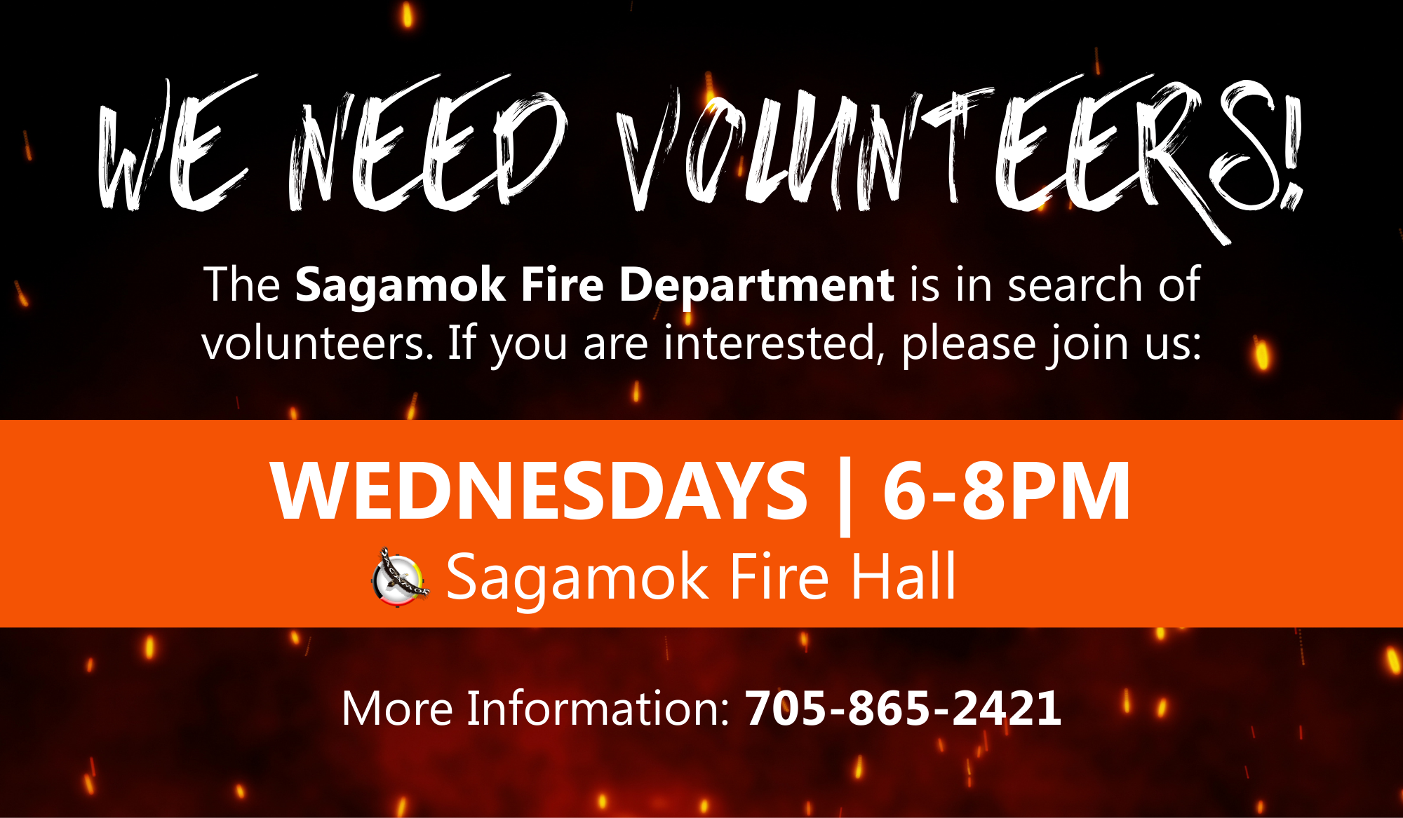 The Sagamok Fire Department is in search of volunteers. If you are interested, please join us for training: