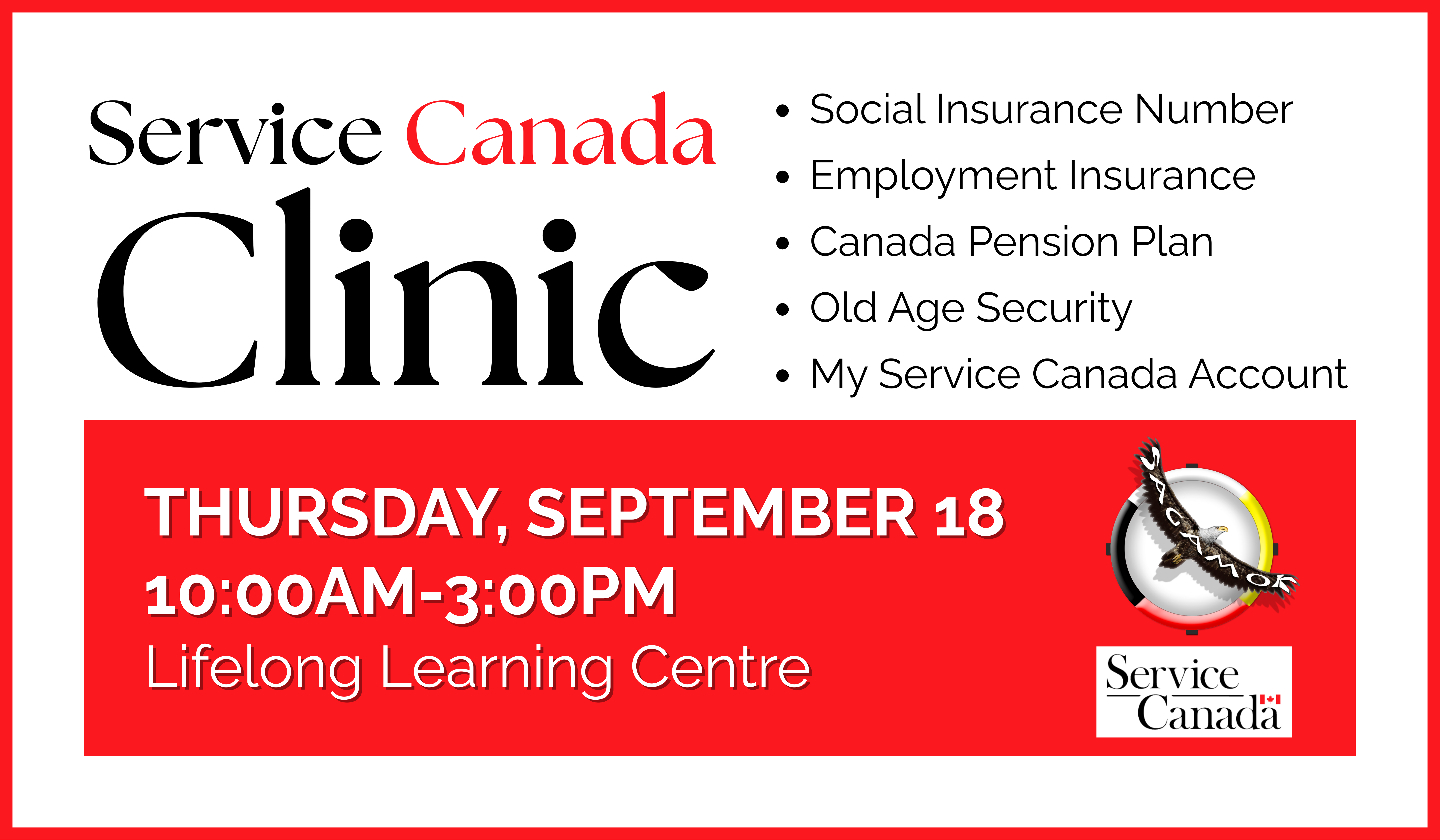 Service Canada will be in Sagamok to help community members apply for the programs and services listed below.