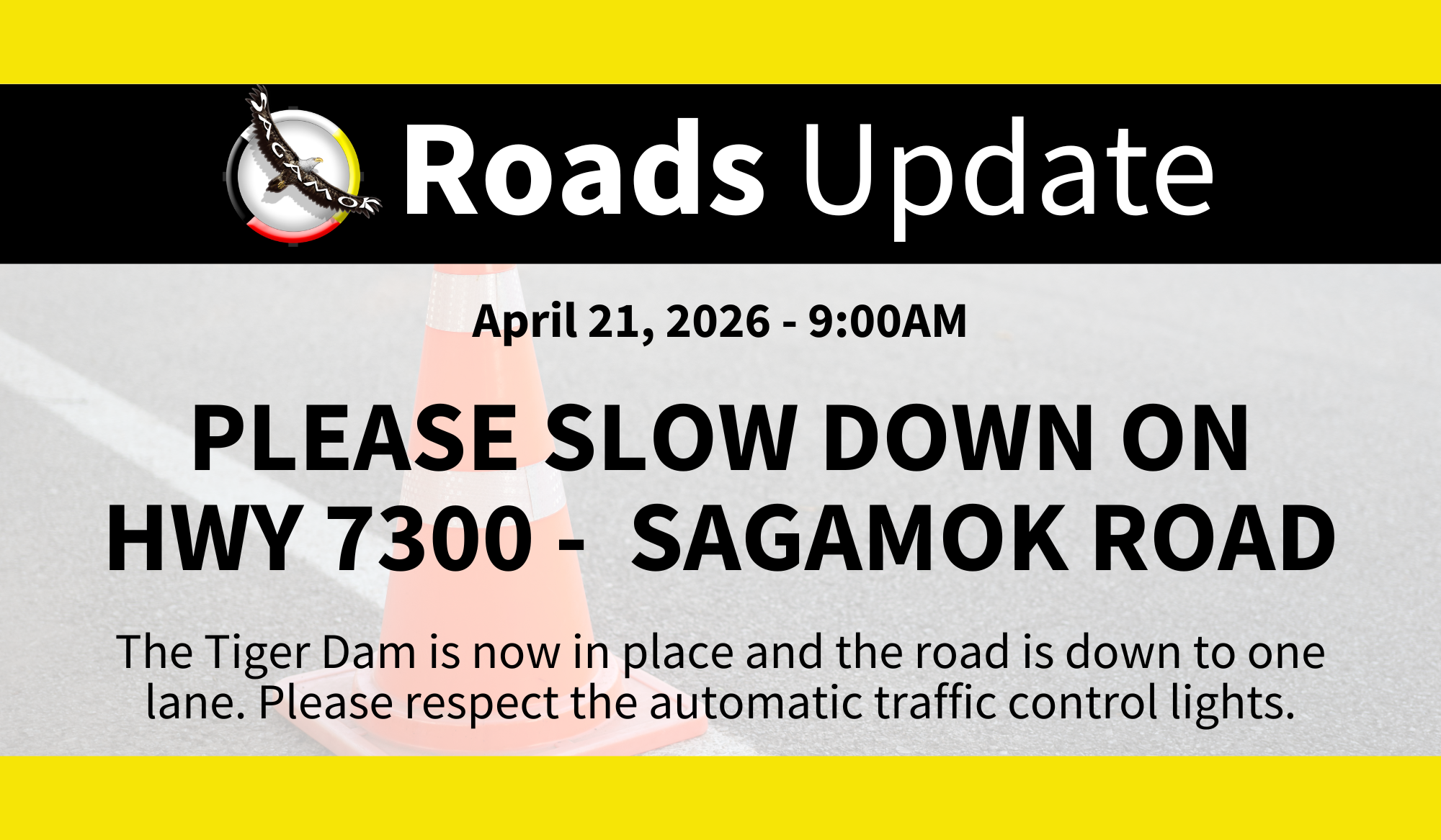 The Tiger Dam is now in place and the road is down to one lane. Please slow down and respect the automatic traffic control lights.