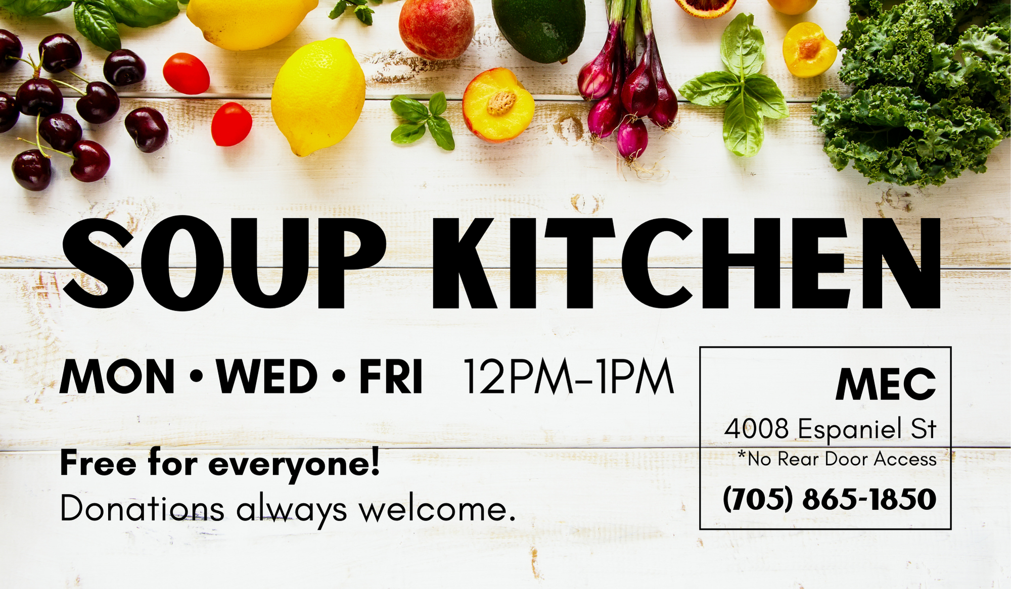 The Sagamok Anishnawbek Soup Kitchen is now open Mondays, Wednesdays and Fridays from 12:00pm until 1:00pm.