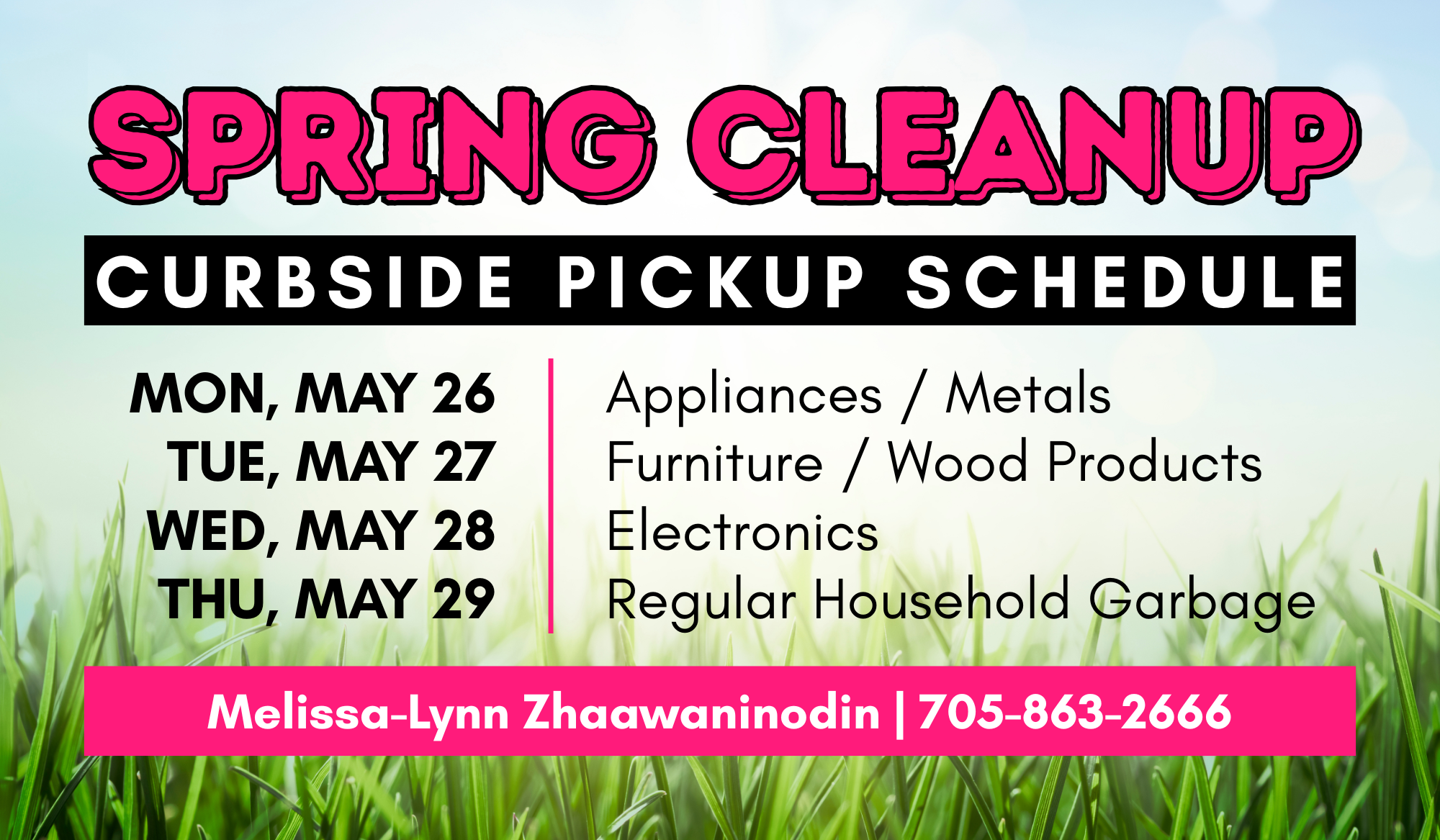 For questions please contact Melissa-Lynn Zhaawaninodin at 705-863-2666.