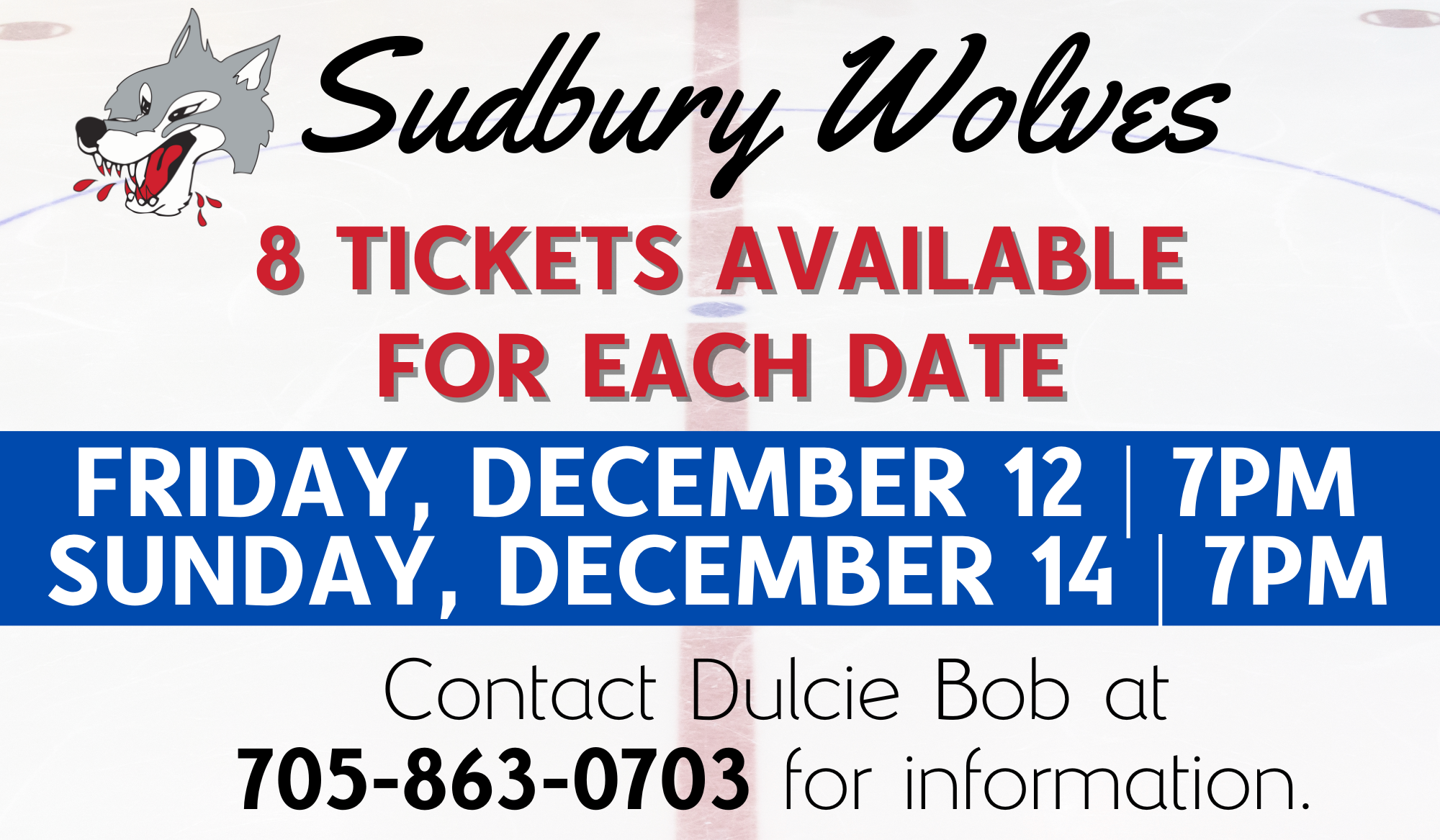 Contact Dulcie Bob at 705-863-0703 to claim your tickets now!
