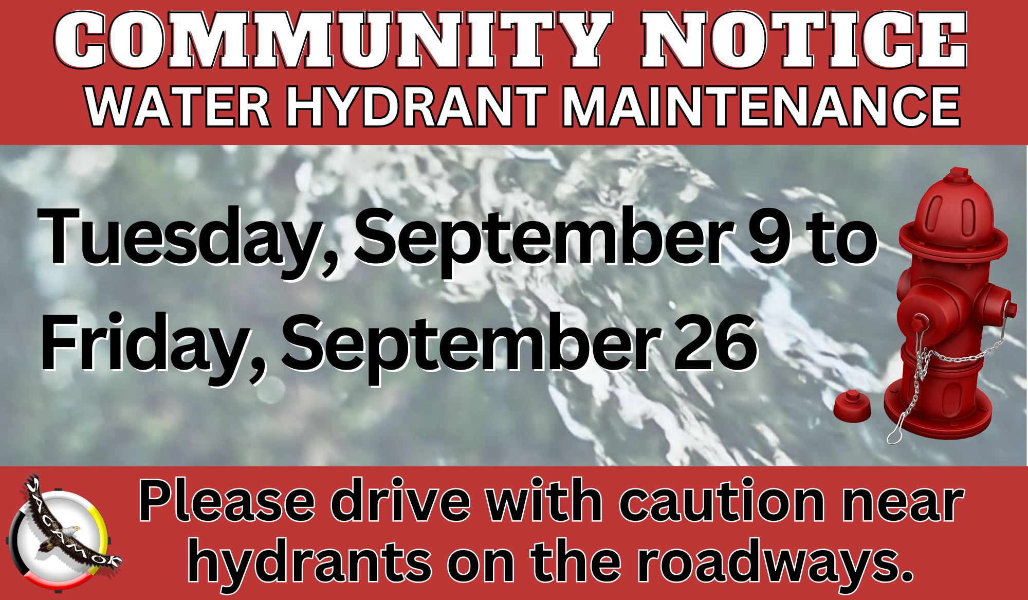 The Water Department with a contractor will be digging up hydrant valves and raising them for hydrant repairs from September 9-26, 2025.