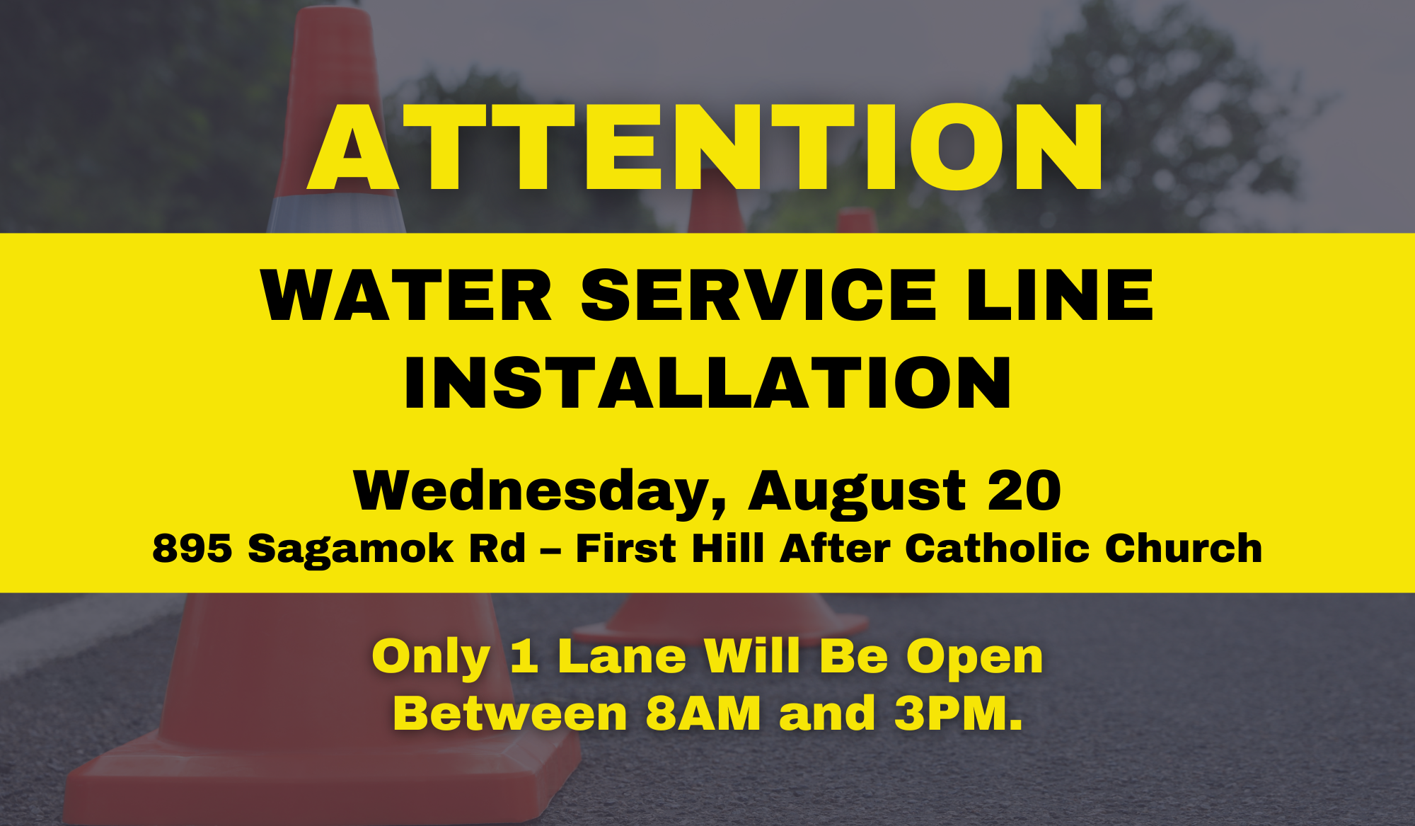 A water service line installation will take place on Wednesday, August 20, 2025.