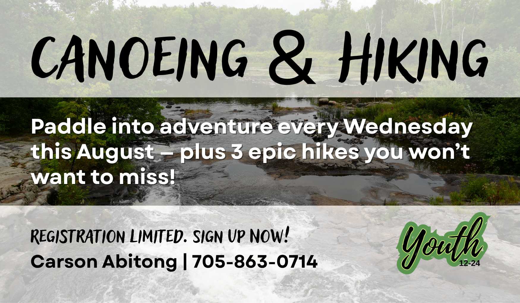 Paddle into adventure every Wednesday this August — plus 3 epic hikes you won’t want to miss! Ages 12-24. 🛶