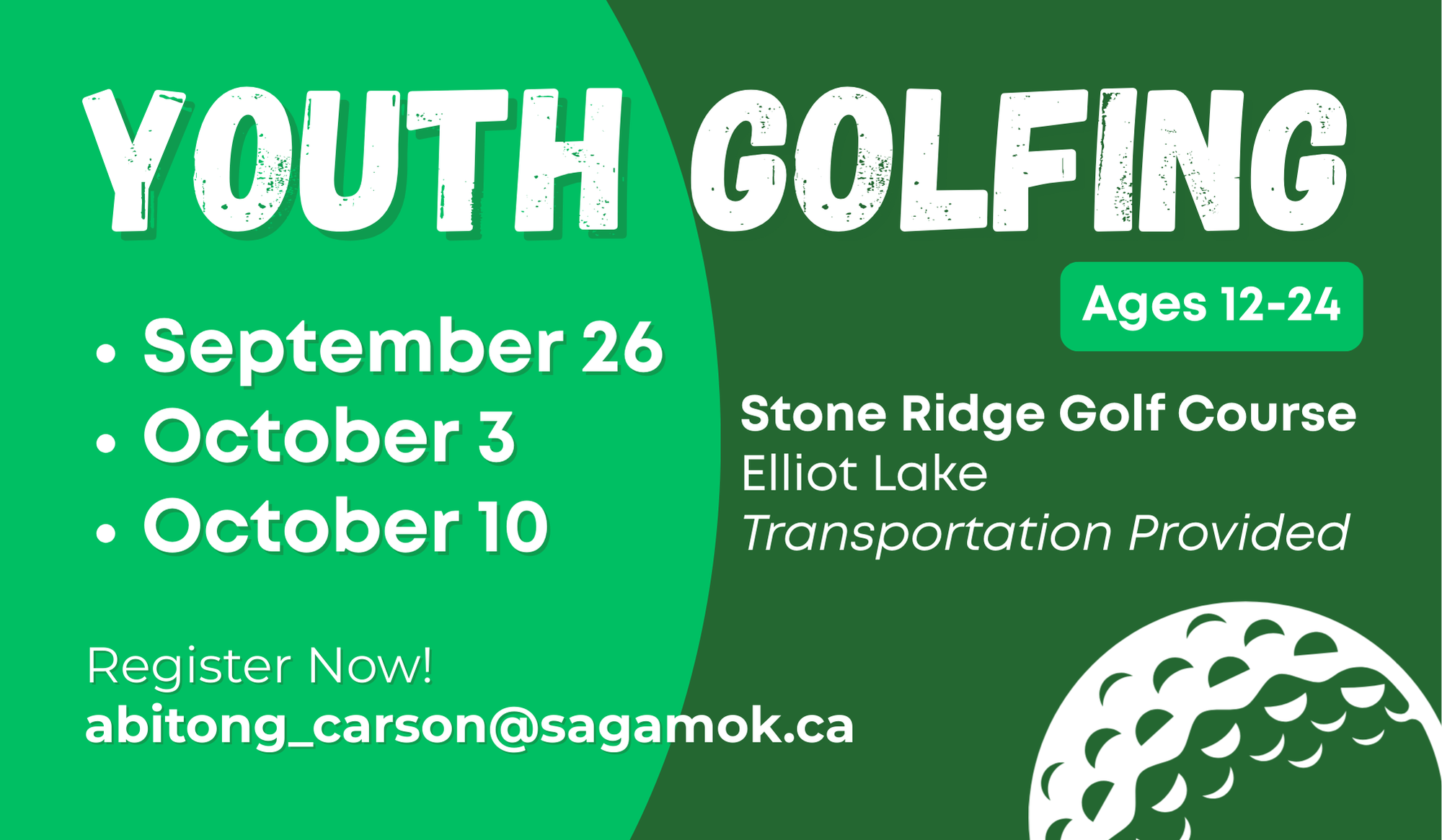 Golfing at Stone Ridge Golf Course in Elliot Lake! Ages 12-24.